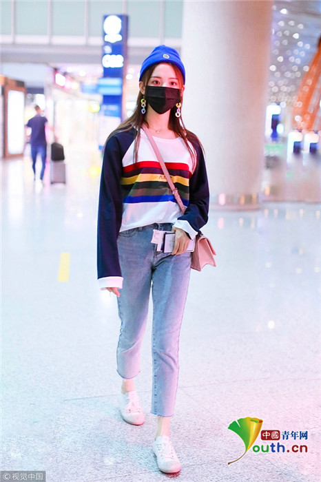 2018年9月25日,北京,“錦鯉少女”楊超越現(xiàn)身機(jī)場(chǎng),她身穿“彩虹裝”青春無敵,戴著糖果色耳環(huán),細(xì)節(jié)處可愛吸睛。