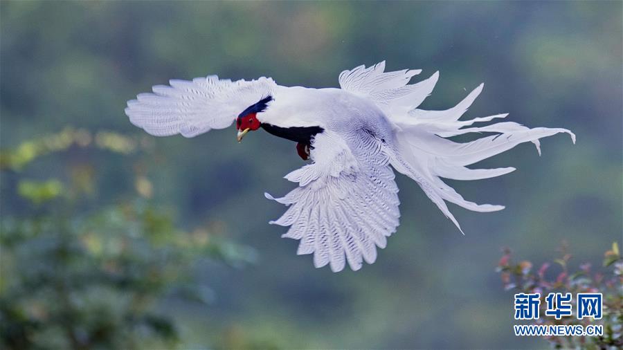 9月26日,一只白鷴在南靖縣鵝仙洞自然保護(hù)區(qū)飛翔。 新華社記者 梅永存 攝