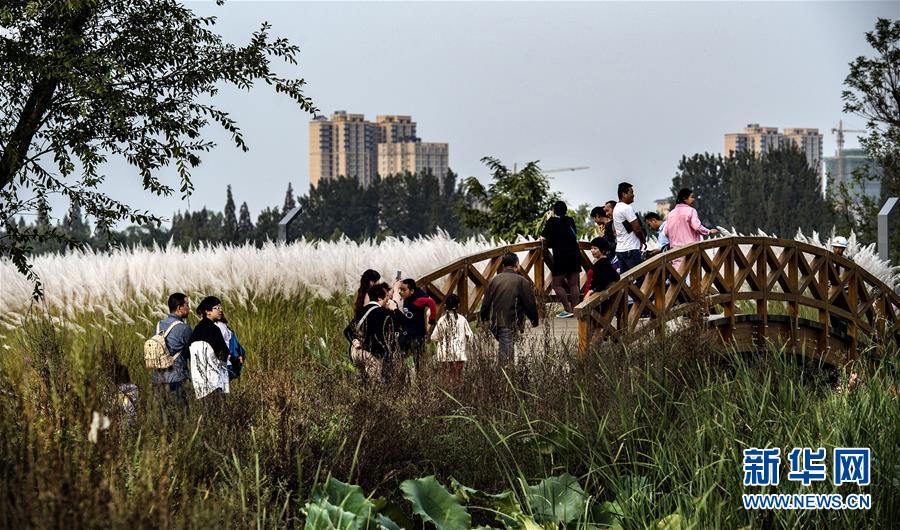 9月28日,人們?cè)谔J花盛開(kāi)的漢江濕地公園里游覽。新華社記者陶明 攝