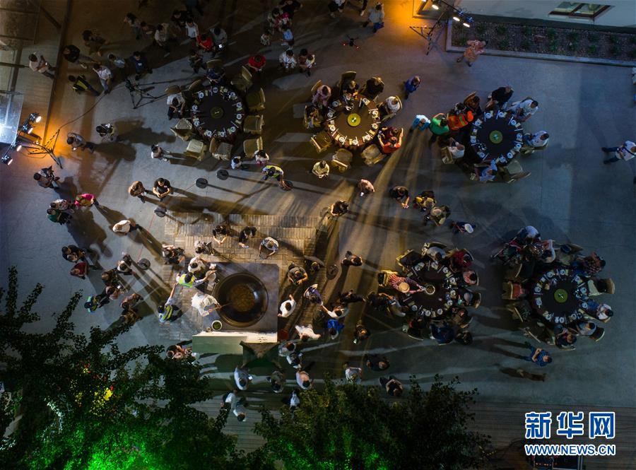 9月30日,中外游客入席品嘗“江鮮第一鍋”(無(wú)人機(jī)拍攝)。當(dāng)日,浙江省杭州市富陽(yáng)區(qū)場(chǎng)口鎮(zhèn)東梓關(guān)村開(kāi)啟“江鮮第一鍋”,幾位大廚聯(lián)手在直徑1.5米的大鍋內(nèi)烹制美味江鮮,這也是當(dāng)?shù)亍敖r大會(huì)”的重頭戲。東梓關(guān)村有著1000多年歷史,古就是富春江南岸重要的商貿(mào)集散地,素有富春江“東流第一關(guān)”之稱(chēng)。隨著近年來(lái)美麗鄉(xiāng)村建設(shè)的推進(jìn),東梓關(guān)村著力打造粉墻黛瓦的江南民居,同時(shí)依托富春江豐富的江鮮魚(yú)類(lèi)資源,在秋季舉辦特色“江鮮大會(huì)”,通過(guò)江鮮捕撈體驗(yàn)、江鮮第一鍋、百鮮宴、農(nóng)家菜大賽等活動(dòng),吸引各地游客前來(lái)感受富春江漁民豐收的喜悅和千年古村的獨(dú)特魅力,推動(dòng)鄉(xiāng)村特色旅游發(fā)展。新華社記者徐昱攝