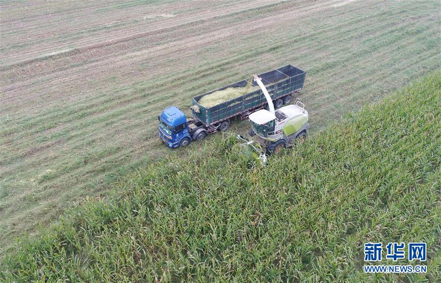 10月8日,河北故城縣里老鄉(xiāng)林場(chǎng)村農(nóng)民在收獲青貯玉米(無(wú)人機(jī)拍攝)。 近年來(lái),河北省故城縣結(jié)合市場(chǎng)需求,通過(guò)“龍頭企業(yè)+基地+農(nóng)戶”的經(jīng)營(yíng)模式,鼓勵(lì)引導(dǎo)農(nóng)民發(fā)展訂單式青貯玉米種植,不僅增加了種植戶收入,而且為養(yǎng)殖企業(yè)提供了優(yōu)質(zhì)飼料。目前,故城縣已發(fā)展青貯玉米種植面積6萬(wàn)余畝。 新華社記者 朱旭東 攝