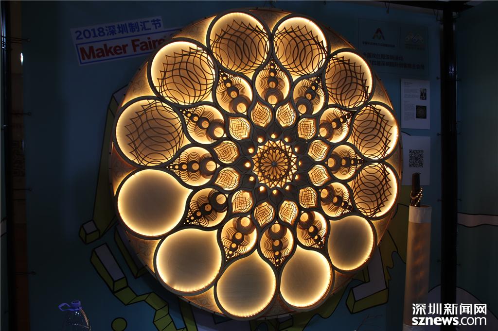 在主會場一樓展廳內(nèi),一款由激光切割制作的燈具十分精美