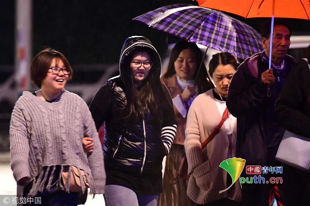10月9日,受冷空氣影響,沈陽氣溫突降,最低氣溫僅僅2℃,逼近冰點(diǎn),市民棉衣出行。低溫給出行的市民帶來諸多不便。沈陽 攝 圖片來源:視覺中國