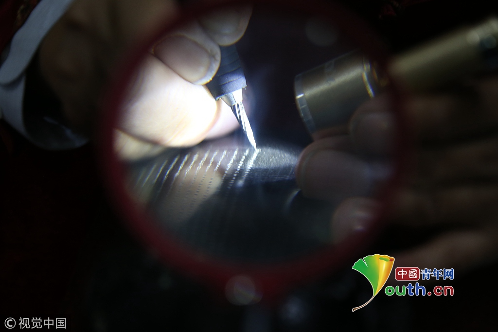 黑陶鼎上有《論語(yǔ)》《道德經(jīng)》等作品,1個(gè)字不到1毫米,用放大鏡才能看清。