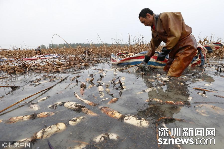 2018年10月14日,江蘇宿遷,泗洪縣曹廟鄉(xiāng)瓦廟村村民在藕蝦共作基地參加挖藕比賽。