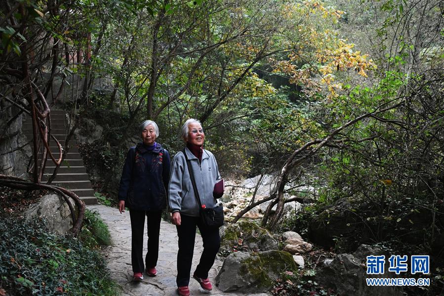 10月16日,兩位老人在西狹頌景區(qū)內游覽。 新華社記者 陳斌 攝