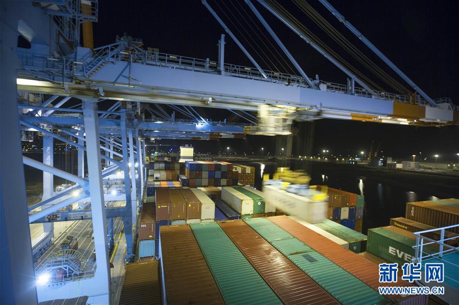 10月15日晚,吊車在比利時澤布呂赫港集裝箱碼頭進行裝卸作業(yè)。 新華社記者 葉平凡 攝