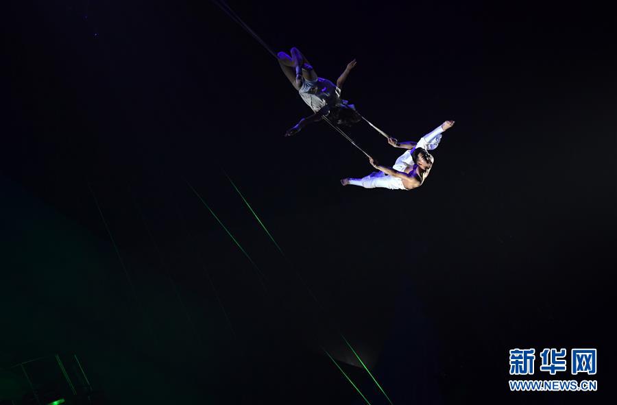 10月16日,演員在濮陽國際雜技藝術節(jié)上表演雜技《男女雙人秋千》。 新華社記者 朱祥 攝