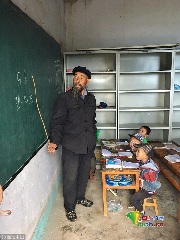 2017年9月26日,甘肅省武山縣樺林鎮(zhèn),有一個(gè)住著80多戶人家的小山村,叫柒坪村。村里有個(gè)沒(méi)有名字的幼兒園,里面有16個(gè)可愛(ài)的孩子。這個(gè)幼兒園的老師,不是女老師,更不是年輕人,是一位男老師,是一位75歲的老教師,他叫高世榮。圖片作者:一平/視覺(jué)中國(guó)