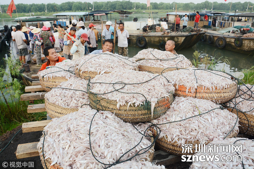2018年8月16日,安徽巢湖漁民正在裝運(yùn)捕撈上來的毛魚和銀魚。