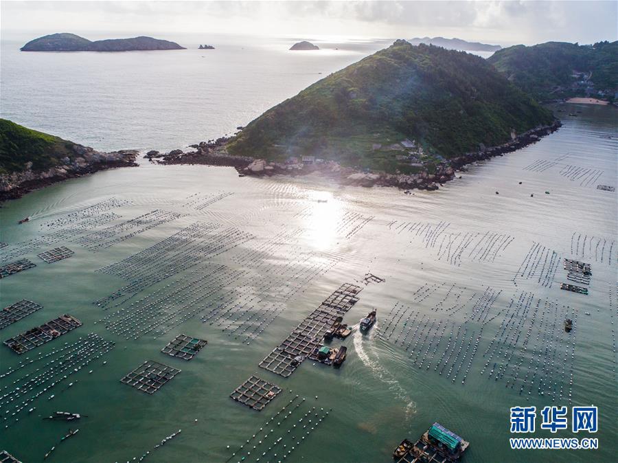 8月19日,空中俯瞰南麂島海域內(nèi)的“海上牧場(chǎng)”養(yǎng)殖區(qū)(無(wú)人機(jī)拍攝)。南麂島位于浙江東南海域,水質(zhì)好,水溫、鹽度都適合大黃魚等養(yǎng)殖魚類的生長(zhǎng)繁殖,因此當(dāng)?shù)氐乃a(chǎn)品也一直保持了較高的品質(zhì)和口碑。進(jìn)入8月,浙江省溫州市平陽(yáng)縣南麂鎮(zhèn)海域上大片的大黃魚、貽貝等特色海產(chǎn)品養(yǎng)殖區(qū)域迎來(lái)豐收季節(jié),養(yǎng)殖戶們駕駛漁船在養(yǎng)殖區(qū)海域進(jìn)行打撈收獲,在碧海藍(lán)天下構(gòu)成了一幅“海上牧場(chǎng)”的美麗豐收景象。近年來(lái),南麂鎮(zhèn)政府引導(dǎo)漁民養(yǎng)殖戶充分發(fā)揮“靠海吃?!钡馁Y源優(yōu)勢(shì),大力發(fā)展海洋養(yǎng)殖經(jīng)濟(jì)和海島旅游經(jīng)濟(jì),實(shí)現(xiàn)了南麂由“生態(tài)美”向“產(chǎn)業(yè)美”,“產(chǎn)業(yè)美”向“經(jīng)濟(jì)美”的轉(zhuǎn)變。同時(shí)該鎮(zhèn)堅(jiān)持以大黃魚、貽貝等為特色產(chǎn)業(yè)支撐,精準(zhǔn)發(fā)展高效海洋養(yǎng)殖業(yè),重點(diǎn)培養(yǎng)一批新型職業(yè)漁民,依靠專業(yè)技術(shù)支持,實(shí)現(xiàn)深海仿生養(yǎng)殖,讓好生態(tài)造就好品質(zhì),重點(diǎn)打造南麂養(yǎng)殖品牌,組建營(yíng)銷網(wǎng)絡(luò),拓展特色海產(chǎn)品市場(chǎng)。新華社記者 徐昱攝