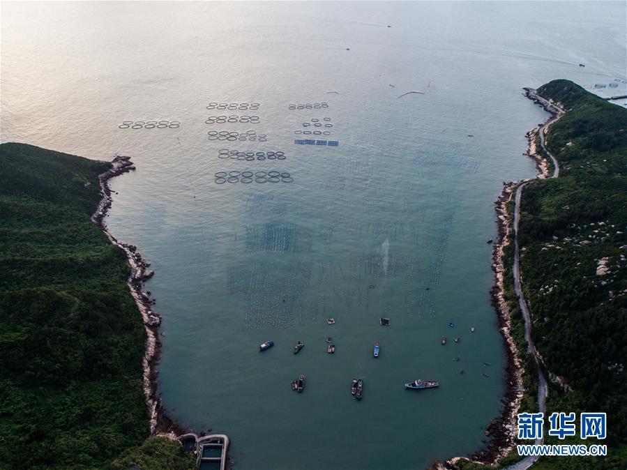 8月18日,南麂島馬祖岙海域的“海上牧場(chǎng)”養(yǎng)殖區(qū)(無(wú)人機(jī)拍攝)。南麂島位于浙江東南海域,水質(zhì)好,水溫、鹽度都適合大黃魚等養(yǎng)殖魚類的生長(zhǎng)繁殖,因此當(dāng)?shù)氐乃a(chǎn)品也一直保持了較高的品質(zhì)和口碑。進(jìn)入8月,浙江省溫州市平陽(yáng)縣南麂鎮(zhèn)海域上大片的大黃魚、貽貝等特色海產(chǎn)品養(yǎng)殖區(qū)域迎來(lái)豐收季節(jié),養(yǎng)殖戶們駕駛漁船在養(yǎng)殖區(qū)海域進(jìn)行打撈收獲,在碧海藍(lán)天下構(gòu)成了一幅“海上牧場(chǎng)”的美麗豐收景象。近年來(lái),南麂鎮(zhèn)政府引導(dǎo)漁民養(yǎng)殖戶充分發(fā)揮“靠海吃海”的資源優(yōu)勢(shì),大力發(fā)展海洋養(yǎng)殖經(jīng)濟(jì)和海島旅游經(jīng)濟(jì),實(shí)現(xiàn)了南麂由“生態(tài)美”向“產(chǎn)業(yè)美”,“產(chǎn)業(yè)美”向“經(jīng)濟(jì)美”的轉(zhuǎn)變。同時(shí)該鎮(zhèn)堅(jiān)持以大黃魚、貽貝等為特色產(chǎn)業(yè)支撐,精準(zhǔn)發(fā)展高效海洋養(yǎng)殖業(yè),重點(diǎn)培養(yǎng)一批新型職業(yè)漁民,依靠專業(yè)技術(shù)支持,實(shí)現(xiàn)深海仿生養(yǎng)殖,讓好生態(tài)造就好品質(zhì),重點(diǎn)打造南麂養(yǎng)殖品牌,組建營(yíng)銷網(wǎng)絡(luò),拓展特色海產(chǎn)品市場(chǎng)。新華社記者 徐昱攝