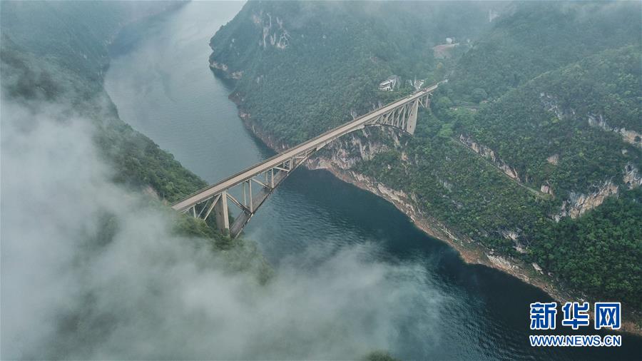 10月18日無人機(jī)航拍的江界河大橋。 新華社記者歐東衢攝