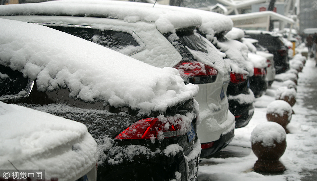 10月18日,烏魯木齊市民在清理車上的積雪。當(dāng)日,新疆烏魯木齊迎來一場降雪。 新華社記者 江文耀 攝