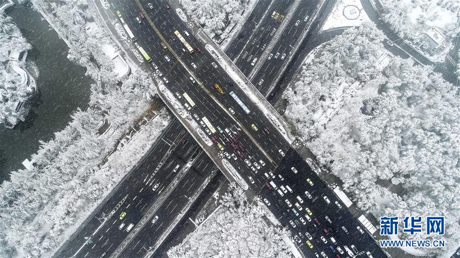 從空中俯瞰雪后的烏魯木齊西大橋(10月18日無(wú)人機(jī)拍攝)。10月18日,新疆烏魯木齊迎來(lái)一場(chǎng)降雪。 新華社記者 江文耀 攝