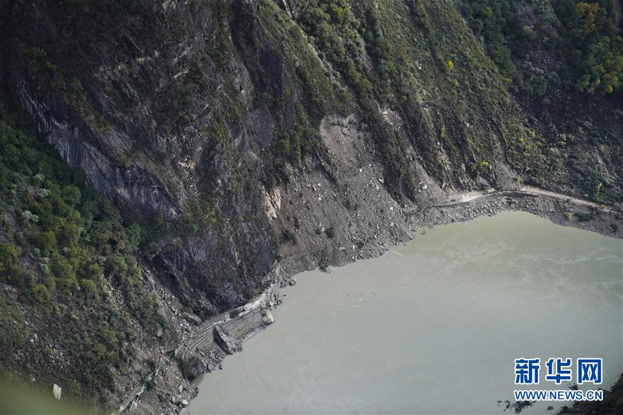 堰塞體現(xiàn)場圖片(10月18日攝)。 新華社記者 普布扎西攝
