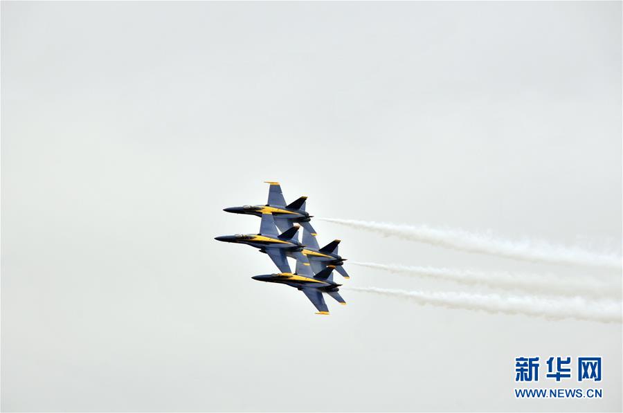 10月20日,在美國休斯敦,美國海軍“藍(lán)天使”飛行表演隊(duì)進(jìn)行飛行表演。 新華社記者劉立偉攝