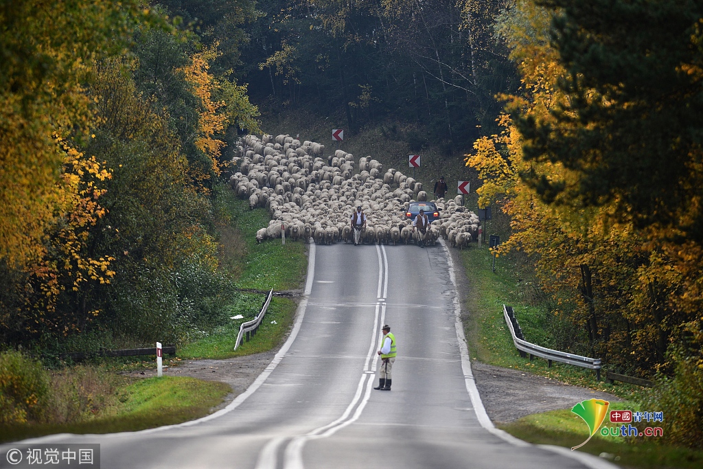 車輛不得不停下來,仿佛被無窮無盡的羊群吞沒了,場面非常壯觀。