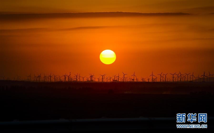 夕陽下位于新疆烏魯木齊南郊的達坂城風力發(fā)電場(2014年6月6日攝)。今年以來,新疆穩(wěn)步推進新能源參與“疆電外送”、擴大與燃煤自備電廠調(diào)峰替代交易等多種電力交易方式,著力破解“綠色電力”上網(wǎng)難題,新能源發(fā)電量同比增加近13個百分點,而棄電量和棄電比實現(xiàn)“雙降”,綠色發(fā)展理念進一步落實。 新疆是我國重要的能源供應和儲備基地,風能、太陽能儲量豐富。近年來,新疆新能源裝機總量突破2700萬千瓦,規(guī)模和占比均居全國前列。新華社記者 趙戈 攝