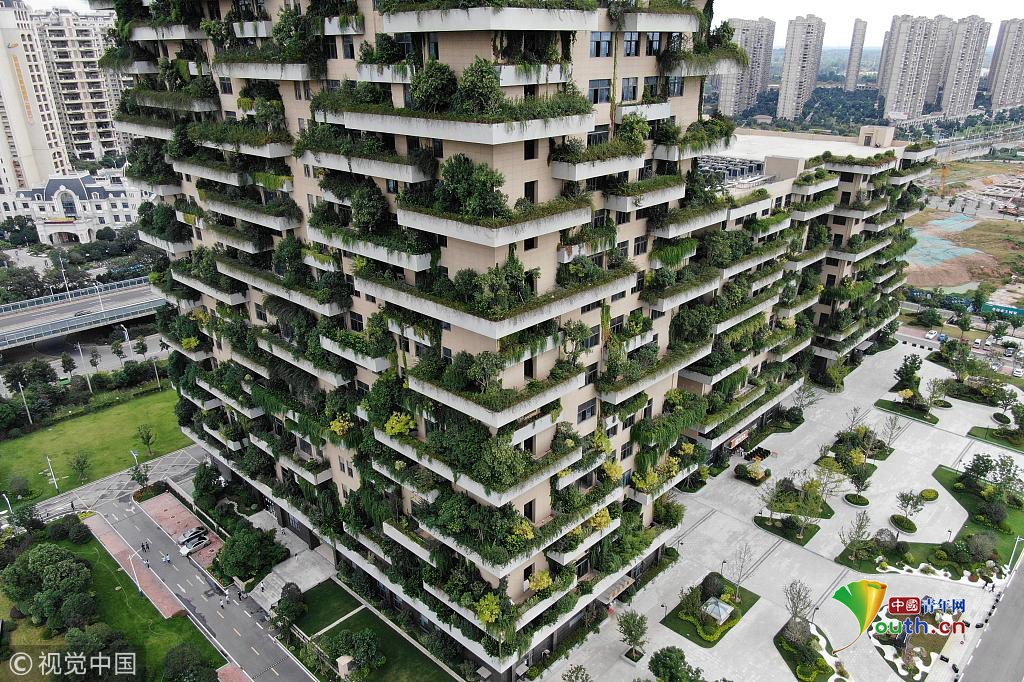 航拍句容“植物建筑”:整棟大樓種滿綠樹(shù)小草