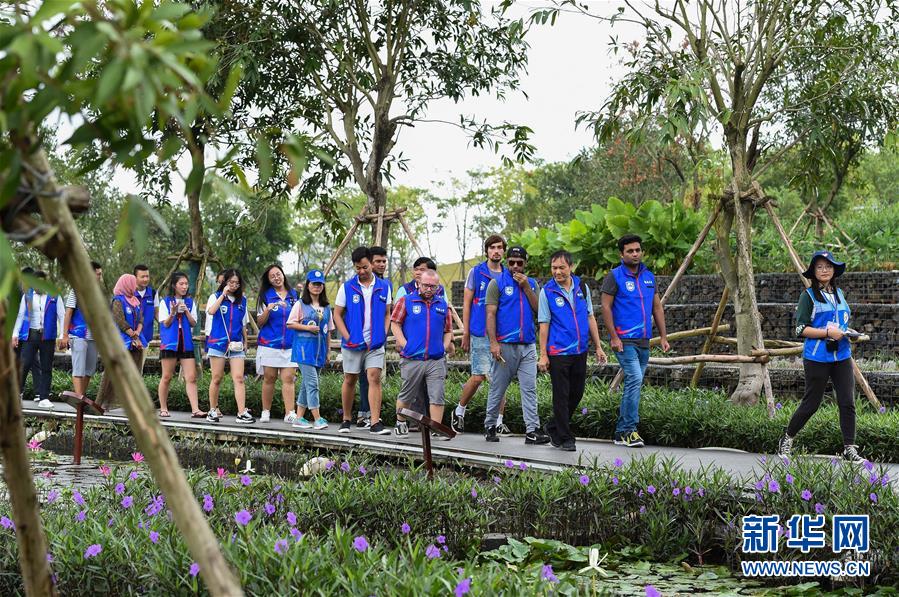 在??谑忻郎岷峪P翔濕地公園,參加濕地保護(hù)志愿服務(wù)講解員培訓(xùn)的留學(xué)生志愿者一邊參觀一邊聽(tīng)中國(guó)志愿者講解(10月21日攝)。 海口市鳳翔濕地公園內(nèi)流水潺潺,綠草如茵。很難想象,這個(gè)市民游客休閑散步的好去處、具有強(qiáng)大污水凈化功能的濕地公園,兩年前還是臭氣熏天、人們避之不及的垃圾堆填場(chǎng)。 把生態(tài)文明建設(shè)放到更加突出的位置,近兩年來(lái)海口市以濕地城市建設(shè)為突破口,不斷創(chuàng)新城市生態(tài)治理,著力改善生態(tài)民生,在生態(tài)文明建設(shè)上闖關(guān)探路。 新華社記者 楊冠宇 攝