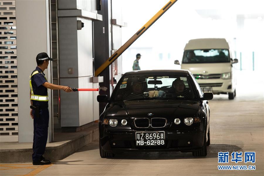10月24日,首輛私家車(chē)行駛在澳門(mén)口岸入境車(chē)道上。當(dāng)日,港珠澳大橋正式通車(chē)。 新華社記者張金加攝