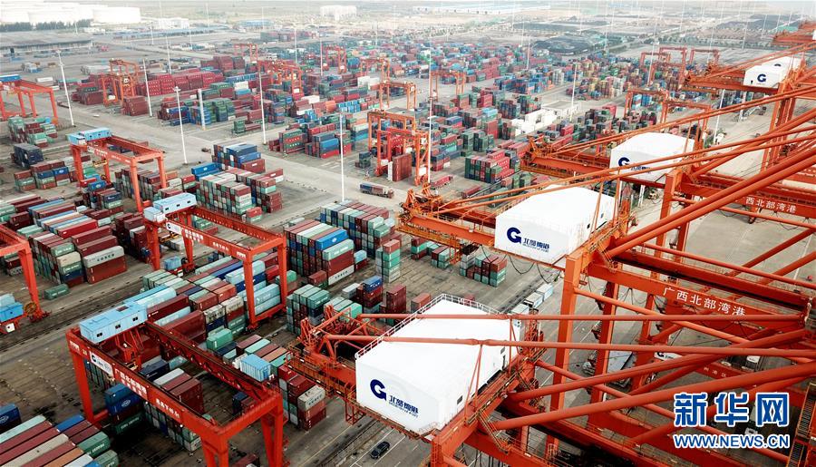 這是廣西欽州保稅港區(qū)碼頭,欽州港是北部灣地區(qū)最大的集裝箱運輸港(10月23日無人機拍攝)。 新華社記者 魏海 攝