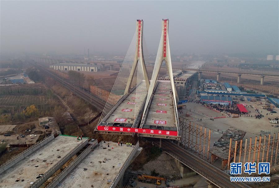 鄭萬高鐵1.65萬噸大橋轉體成功