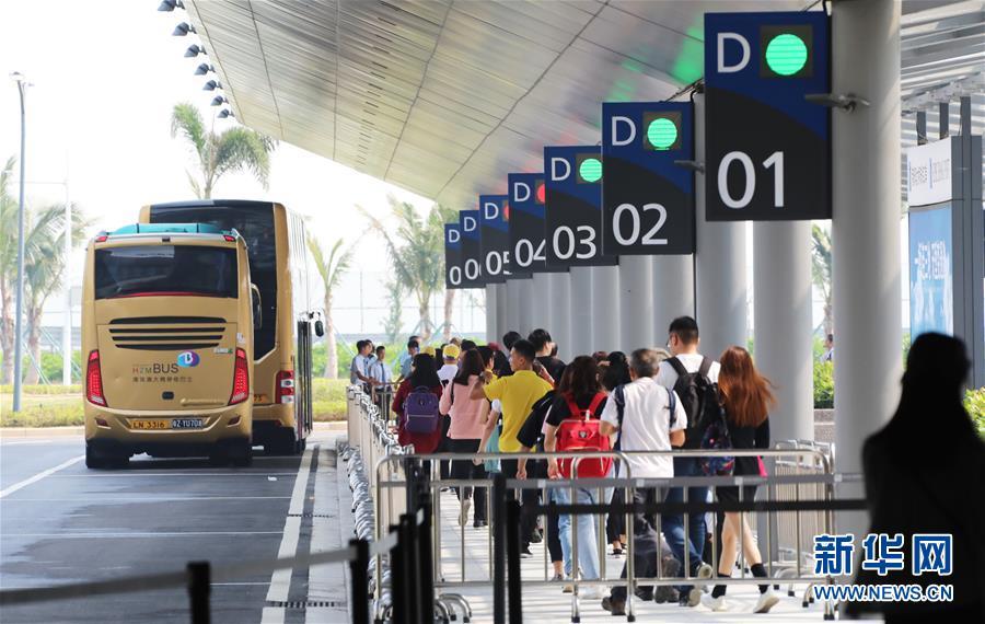10月24日,旅客在穿梭巴士上等待出發(fā)。 當(dāng)日,港珠澳大橋正式通車。