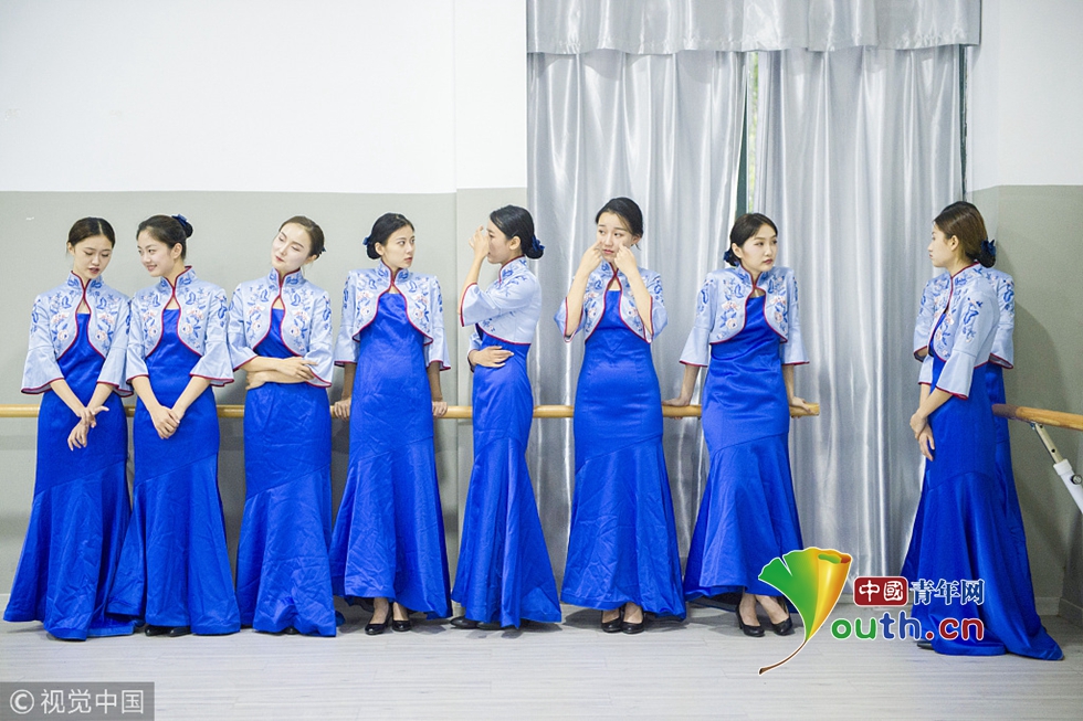 來自浙江傳媒學(xué)院的禮儀志愿者們正在進行緊張有序的集中訓(xùn)練。圖片作者:浙江日報 馮賀/視覺中國