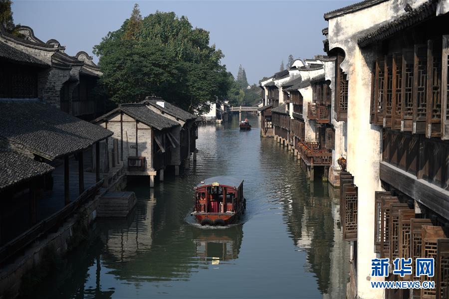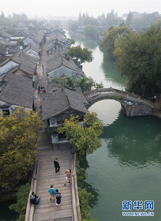 當(dāng)日,浙江省桐鄉(xiāng)著名古鎮(zhèn)烏鎮(zhèn)秋色輕染、薄霧如紗,水鄉(xiāng)曉色靜謐怡人。 新華社記者翁忻旸攝