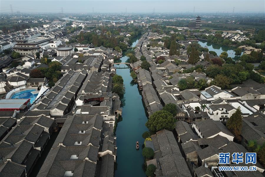 這是10月31日無人機拍攝的浙江烏鎮(zhèn)西柵景區(qū)。 第五屆世界互聯(lián)網(wǎng)大會將于11月7日至9日在浙江烏鎮(zhèn)舉行。 新華社記者 黃宗治 攝