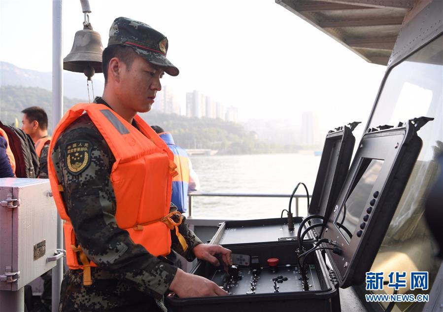10月28日,武警重慶市總隊(duì)船艇支隊(duì)隊(duì)員在操作水下機(jī)器人系統(tǒng)進(jìn)行搜救。