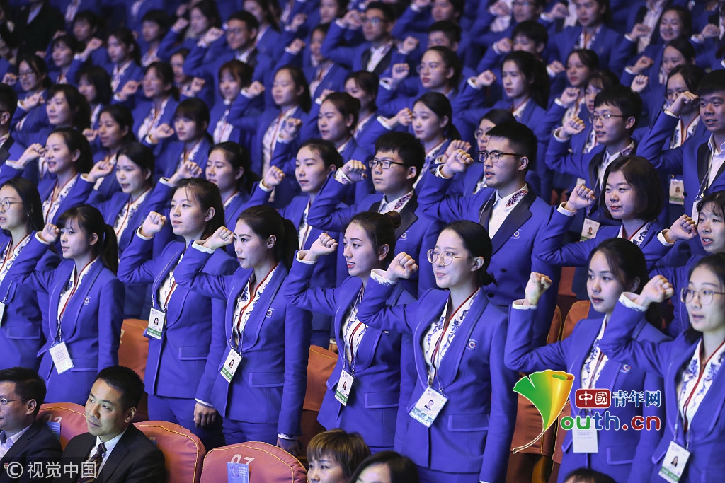 2018年11月1日上午,浙江嘉興,第五屆世界互聯(lián)網(wǎng)大會即將召開,服務(wù)本屆大會的志愿者“小梧桐”在桐鄉(xiāng)科技會展中心舉行出征儀式,并在隨后前往大會舉辦地烏鎮(zhèn)開始培訓(xùn)和志愿者服務(wù)。