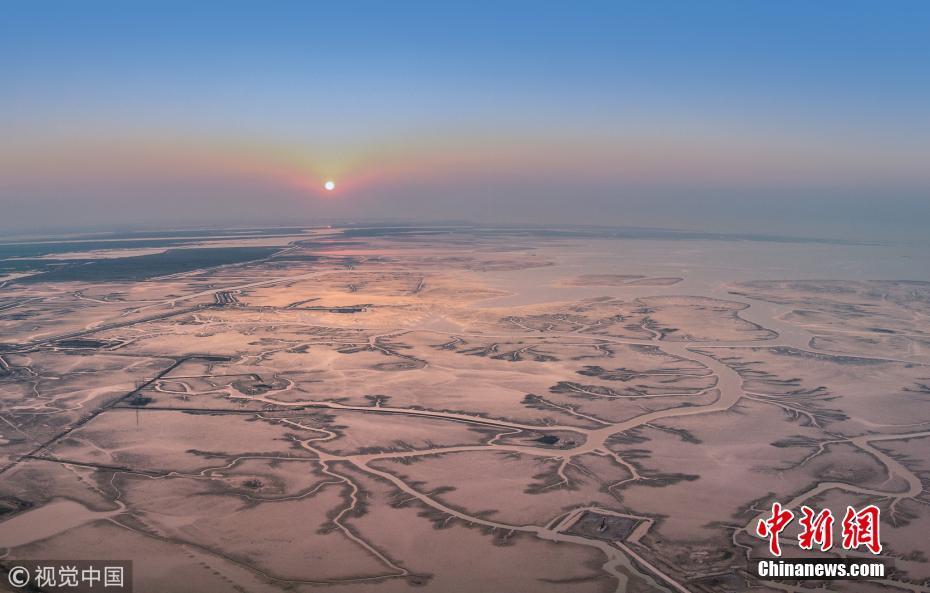 10月3日,山東東營,航拍黃河三角洲國家級自然保護(hù)區(qū)內(nèi)壯觀的河流脈絡(luò)。圖片來源:視覺中國