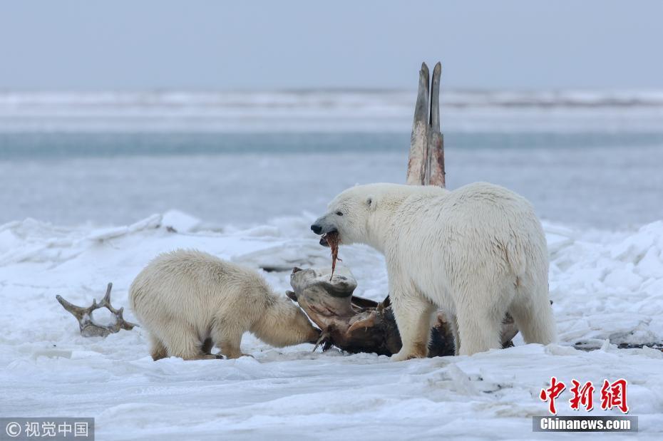 11月1日訊(具體拍攝時(shí)間不詳),美國阿拉斯加州,一只北極熊媽媽帶著幼崽們外出覓食,發(fā)現(xiàn)了一節(jié)長4.5米的北極露脊鯨骸骨。75噸重的鯨魚對(duì)因紐皮亞特人來說是神圣的,他們每年要吃三次鯨魚,把骨頭放在指定的地方,讓北極熊吃完粘在骨頭上的碎肉。攝影師Eiji Itoyama為拍攝此照片在位于北冰洋邊緣的阿拉斯加卡克托維克村停留了5天。圖片來源:視覺中國