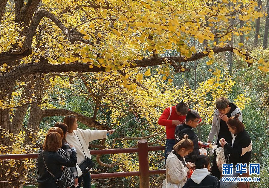 11月1日,游客在河南省嵩縣白河鄉(xiāng)下寺村古銀杏樹下拍照賞景。 深秋時節(jié),河南省嵩縣白河鄉(xiāng)下寺村的古銀杏林為小山村披上了“金甲”。漫天黃葉,遍地金色,一幢幢民居掩映在色彩斑斕的世界里,美不勝收,吸引了眾多游客賞景拍照。 新華社記者 李安 攝
