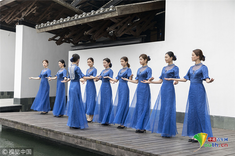 2018年11月5日,浙江嘉興,大會(huì)志愿者“小梧桐”爭(zhēng)分奪秒,在烏鎮(zhèn)展開緊張的實(shí)戰(zhàn)培訓(xùn)。阿凡提達(dá)/視覺中國