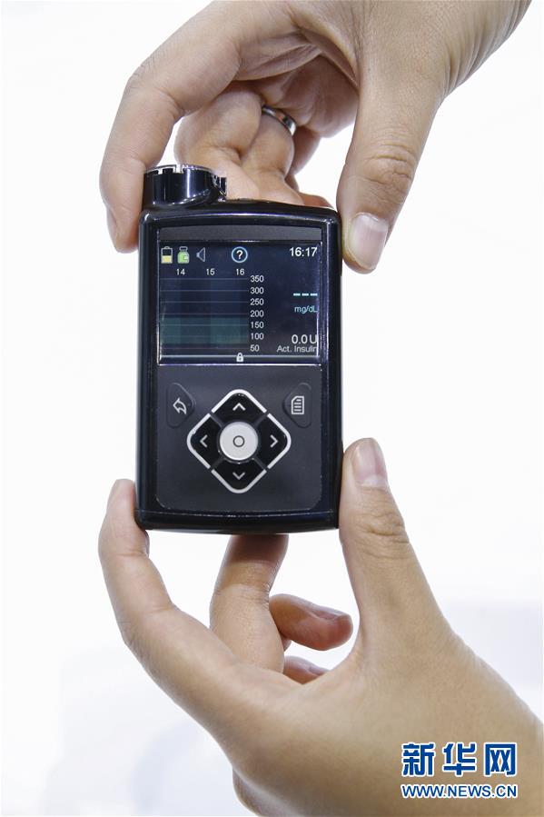11月6日,美國美敦力公司工作人員展示采用智能算法的混合閉環(huán)胰島素泵。該產(chǎn)品能夠根據(jù)實(shí)時(shí)動(dòng)態(tài)血糖曲線調(diào)整基礎(chǔ)胰島素輸注,并且在低血糖事件發(fā)生前停止胰島素輸注,實(shí)現(xiàn)接近“人工胰腺”的功能。 新華社記者 張玉薇 攝
