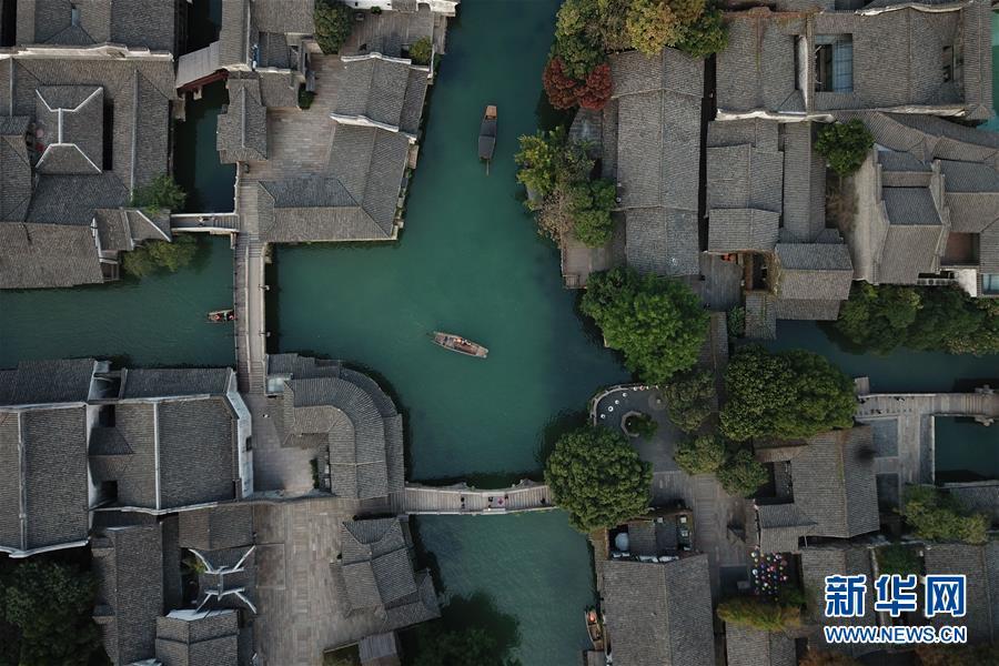 這是10月31日無(wú)人機(jī)拍攝的烏鎮(zhèn)西柵景區(qū)。 新華社記者黃宗治攝