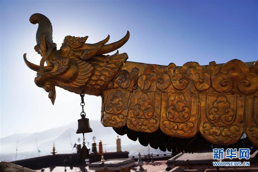 修繕后的布達(dá)拉宮金頂局部(11月7日攝)。 新華社記者普布扎西 攝
