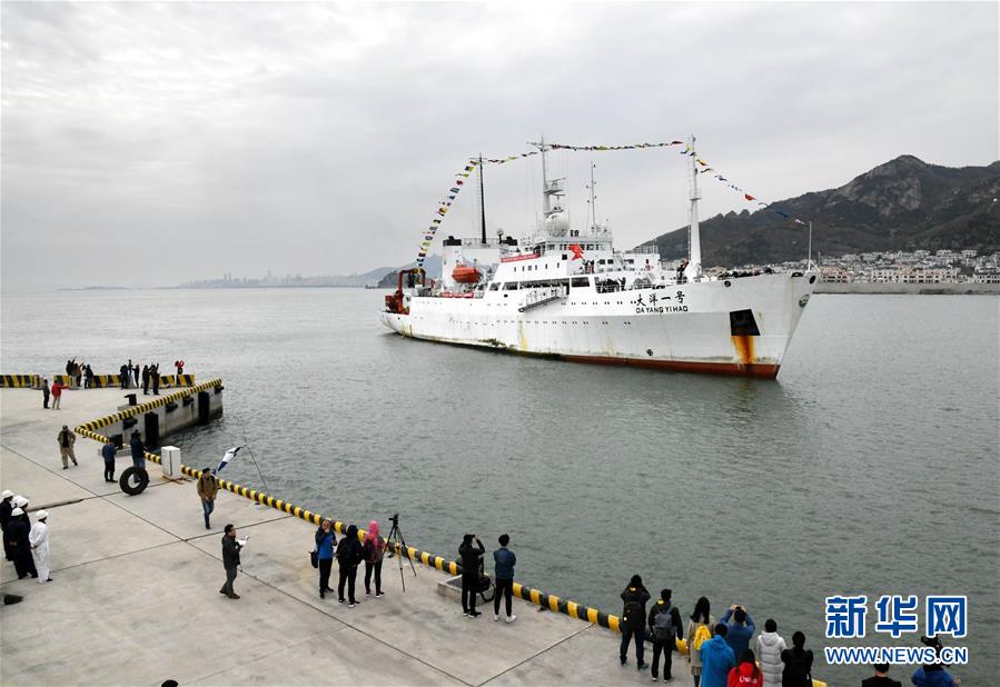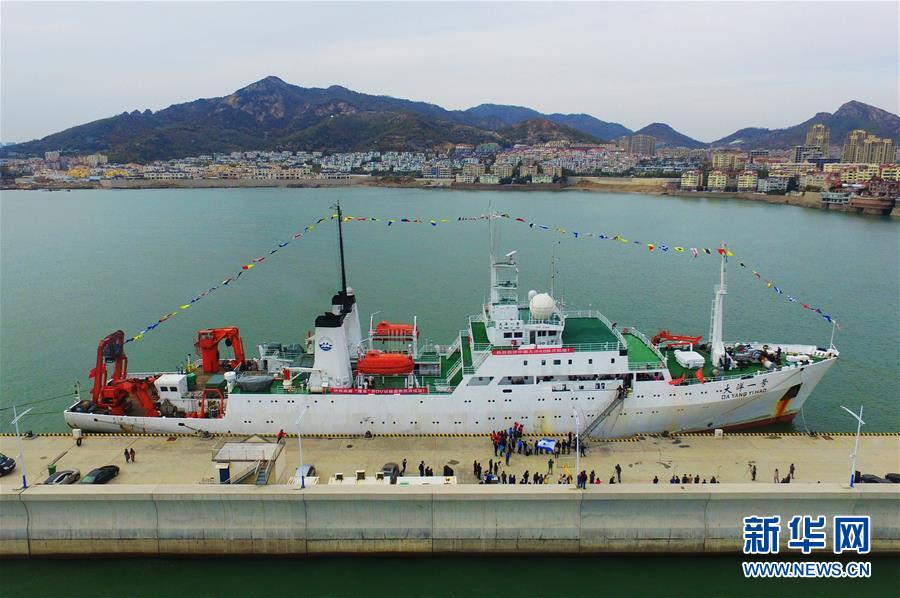 11月7日,“大洋一號”駛?cè)胛挥谇鄭u市嶗山區(qū)的青島海洋科學(xué)考察基地碼頭。 新華社發(fā)(王海濱 攝)