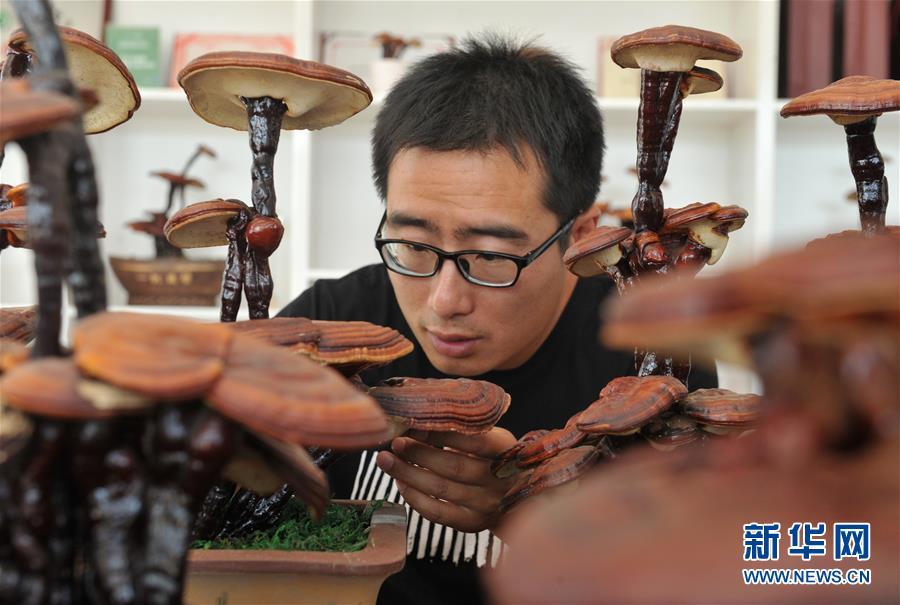 6月20日,廣宗縣大柏社村村民王志恒在展示制作的靈芝盆景。 近年來(lái),河北省廣宗縣大柏社村積極引導(dǎo)農(nóng)民結(jié)合市場(chǎng)需求調(diào)整農(nóng)業(yè)產(chǎn)業(yè)結(jié)構(gòu),采取“公司+合作社+基地+農(nóng)戶(hù)”的經(jīng)營(yíng)模式,發(fā)展特色靈芝種植,并開(kāi)發(fā)出靈芝盆景、靈芝孢子粉等相關(guān)衍生產(chǎn)品,開(kāi)辟出一條富農(nóng)創(chuàng)收新路徑。目前,大柏社村靈芝種植面積近百畝,種植各類(lèi)靈芝5000余株,帶動(dòng)120余名農(nóng)民就業(yè)增收。新華社記者朱旭東攝