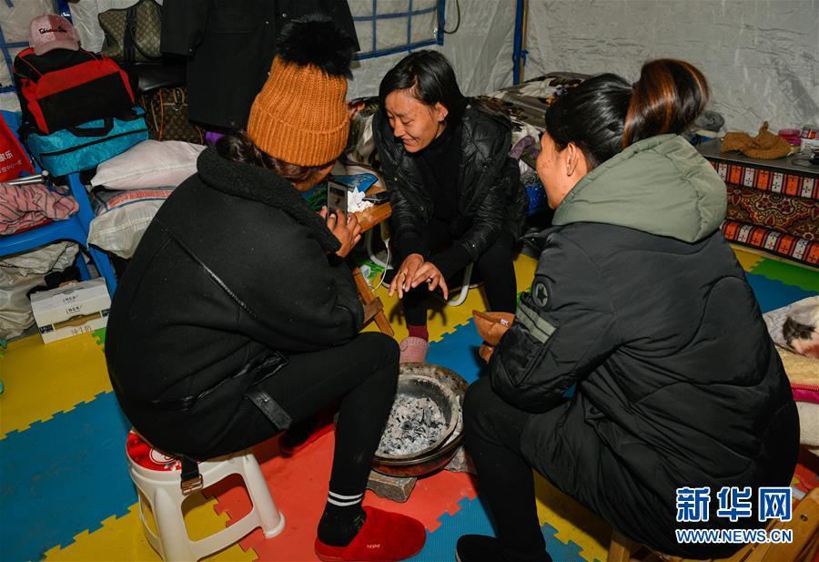 在西藏昌都市江達縣波羅鄉(xiāng)康扎西安置點,群眾在帳篷內(nèi)取暖(11月11日攝)。 西藏自治區(qū)江達縣波羅鄉(xiāng)康扎西安置點,離波羅鄉(xiāng)政府直線距離約3公里,位于一處地勢開闊平緩的山谷中,比堰塞湖水面高出100多米。10月11日金沙江白格段山體滑坡發(fā)生后,當(dāng)?shù)鼐驮谶@里設(shè)立了安置點,安置附近受災(zāi)群眾。 新華社記者 劉東君 攝