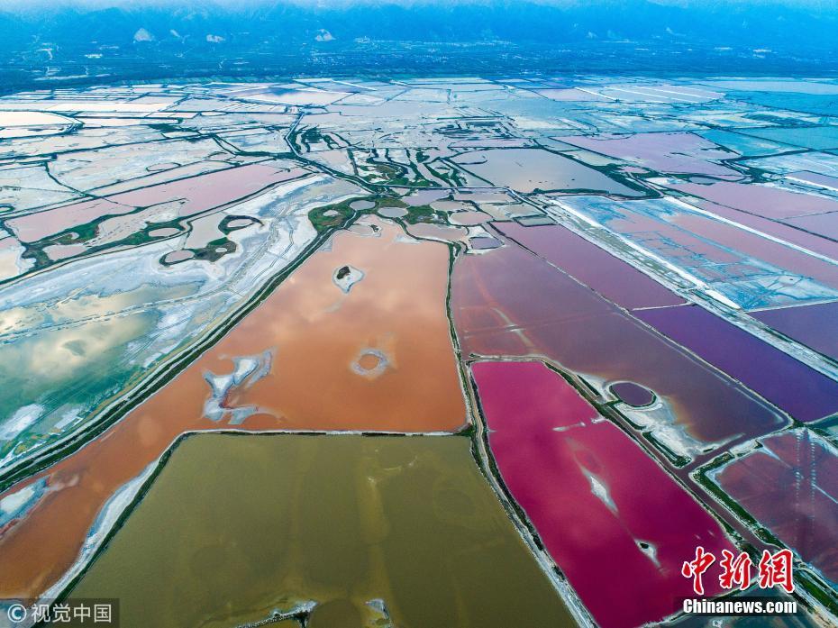 10月6日,山西省運(yùn)城鹽湖景區(qū)鹽湖秋日美景。入秋以來(lái),隨著氣溫的改變,山西省運(yùn)城鹽湖泛起出色彩斑斕、美不勝收的秋天特有的七彩景致,非常迷人。尚建周 攝 圖片來(lái)源:視覺中國(guó)