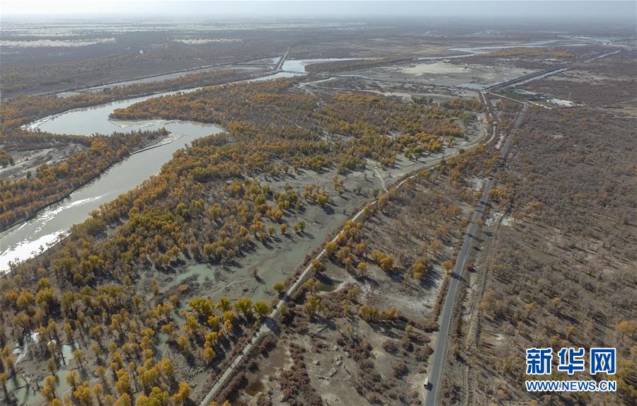 新疆尉犁縣胡楊林深處的一條小路(10月25日攝)。 10月中下旬,靜靜的塔里木河中下游一片金黃。胡楊深處,條條小路蜿蜒綿長(zhǎng)通向遠(yuǎn)方,引人入勝。 塔里木河是中國(guó)最長(zhǎng)的內(nèi)陸河,這一區(qū)域原始胡楊林分布較為集中。隨著塔里木河連續(xù)19次向下游生態(tài)輸水,為胡楊林“解渴”,塔河兩岸生態(tài)得到明顯改善,沙地面積逐年減少。 新華社記者趙戈攝