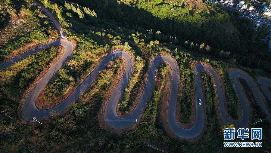 云南宜良“68道拐”位于云南省昆明市宜良縣,是宜良縣城通往靖安哨村的盤(pán)山公路。公路依山梁而修建,蜿蜒曲折,6.3公里的路程共有68道彎。新華社記者 楊牧源 攝