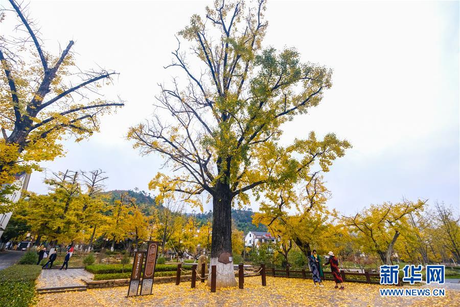 11月16日,游客在銀杏林中游玩。近日,在浙江省長興縣小浦鎮(zhèn),“十里銀杏長廊”和近千畝花海經過近一年的升級改造后,以嶄新的面貌與游客見面?;ê?、觀光小火車、古村民宿、銀杏長廊等旅游項目全面提升了小浦鎮(zhèn)鄉(xiāng)村旅游的品質。新華社記者 徐昱 攝