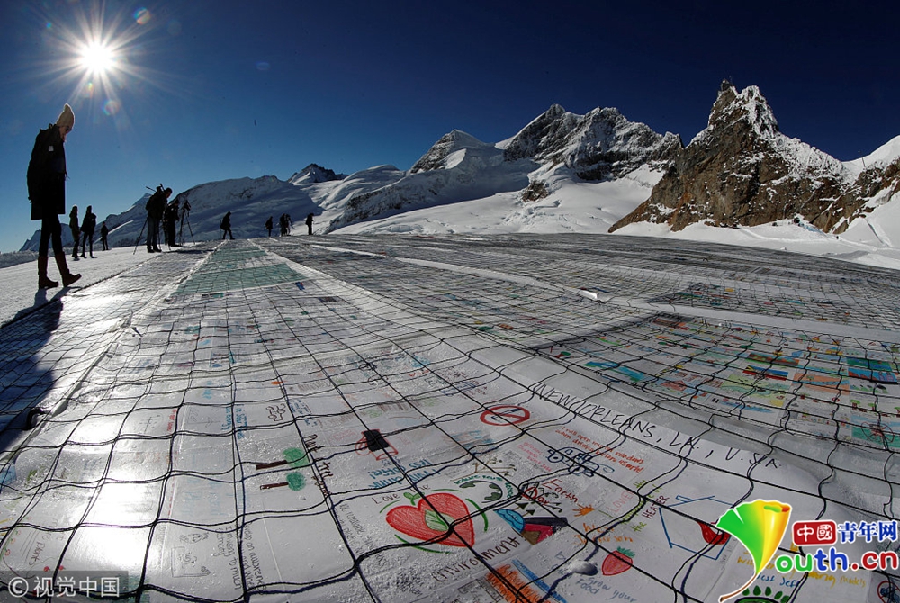 當(dāng)?shù)貢r間11月16日,瑞士阿爾卑斯山“少女峰”上展示的十萬多張明信片,呼吁關(guān)注氣候變暖。這些明信片是由世界各地的人們寄來的,打破了世界上最大明信片的吉尼斯世界記錄。