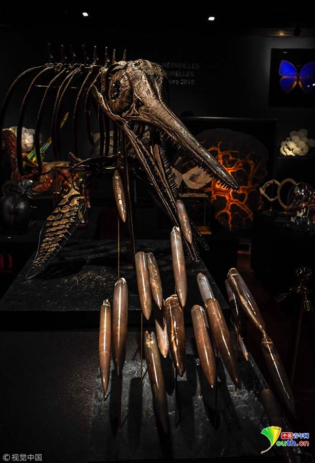 當(dāng)?shù)貢r(shí)間2018年11月19日,法國巴黎,在展出中的1.8億年前侏羅紀(jì)時(shí)期的恐龍骨架,將于11月20日在Drouot拍賣行拍賣。
